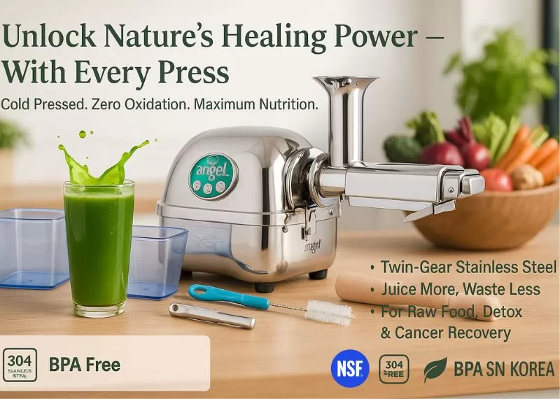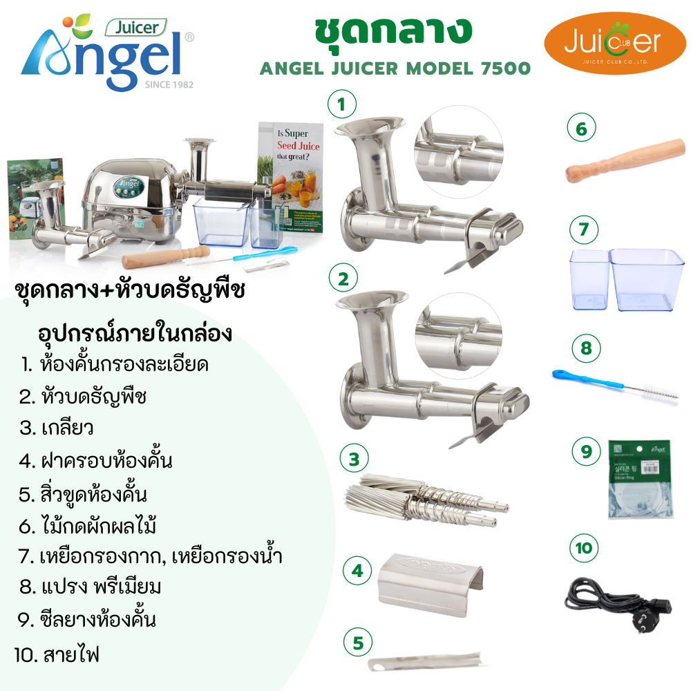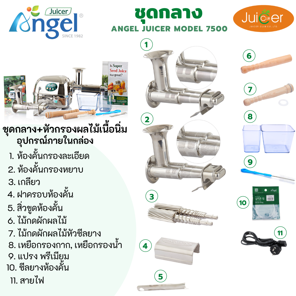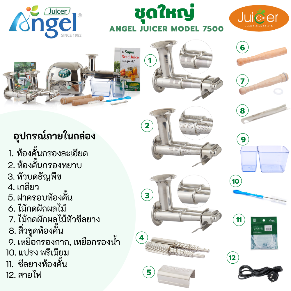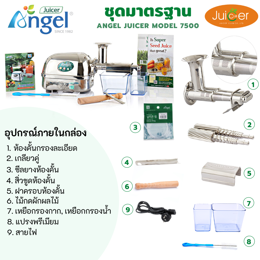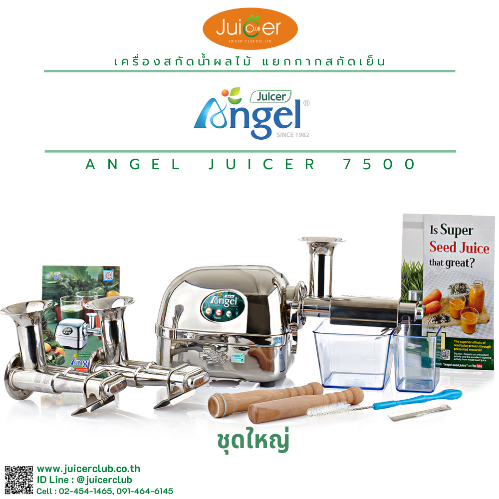 เครื่องคั้นน้ำผักผลไม้แยกกาก สกัดเย็น Angel Juicer 7500 Cold Press Juicer เครื่องแยกกากผักผลไม้สกัดเย็น คุณภาพอันดับ 1 เหมาะสำหรับ ผู้รักสุขภาพขั้นสุด หรือ ผู้ป่วยที่ต้องการฟื้นฟูสุขภาพอย่างรวดเร็ว รอเวลาไม่ได้ ให้คุณภาพน้ำสูงสุด กากแห้งที่สุด สกัดสารจากธรรมชาติ ที่เครื่องสกัดอื่นไม่สามารถทำได้