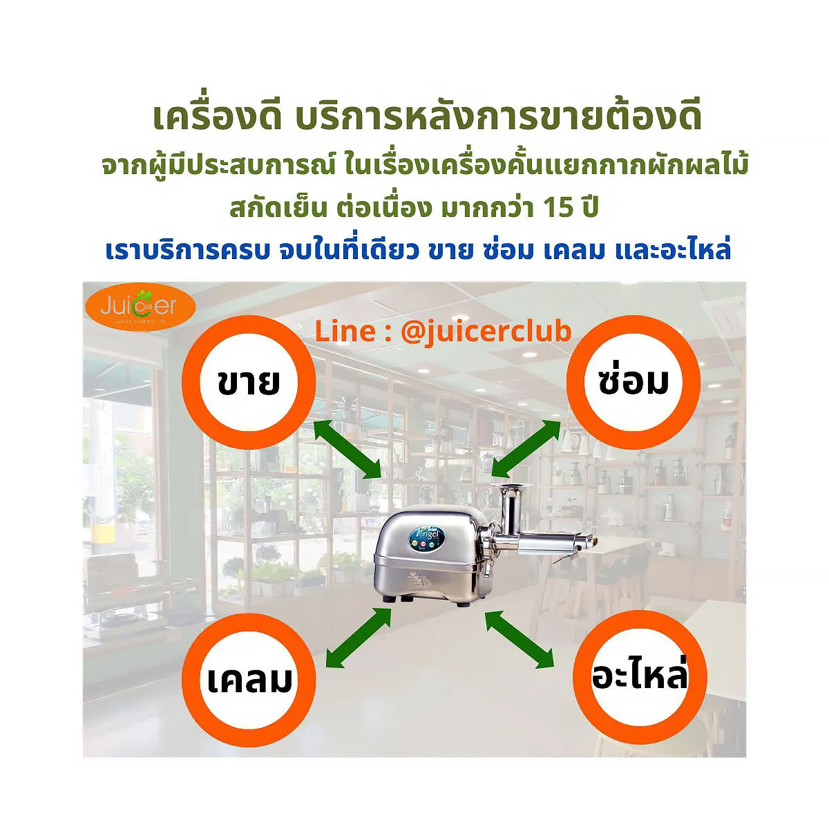 - จำหน่าย โดยตัวแทนอย่างเป็นทางการ ประสบการณ์จำหน่าย เครื่องคั้นน้ำผักผลไม้แยกกาก สกัดเย็น 15 ปี บริการครบ จบในที่เดียว ขาย ซ่อม เคลม และ อะไหล่