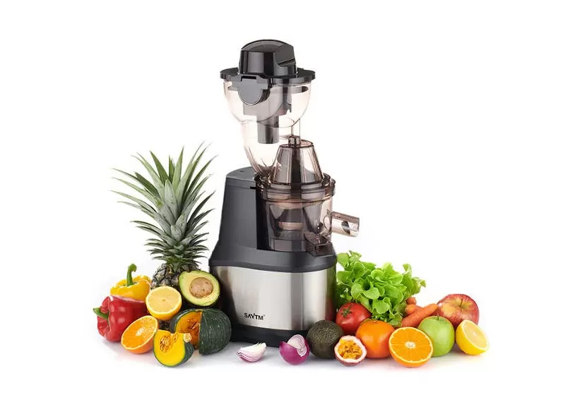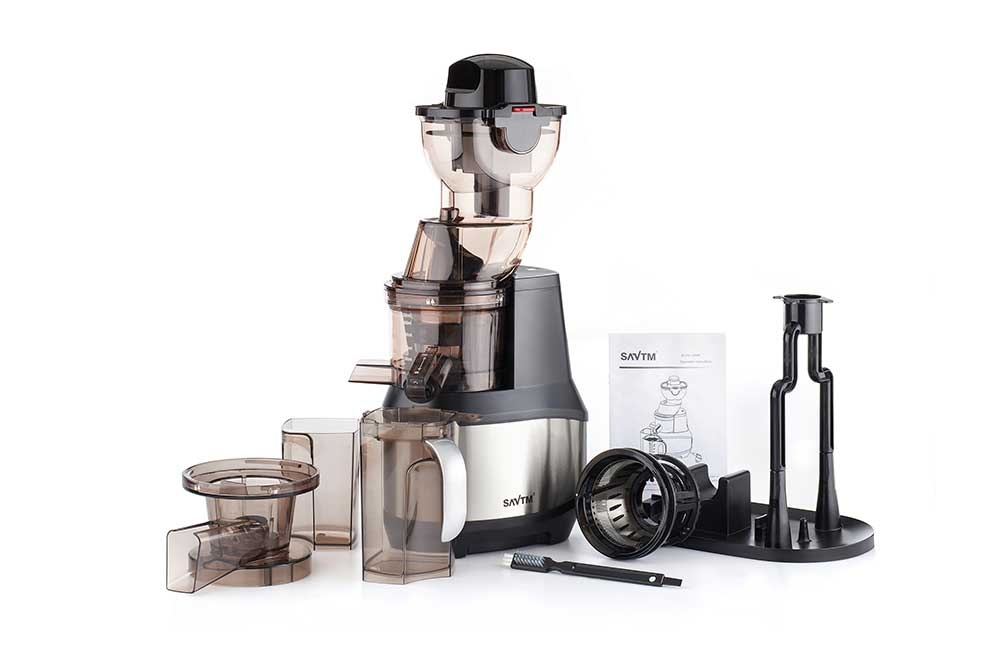 เครื่องสกัดน้ำผลไม้ Savtm JE230-24M00 ระบบเกลียวเดี่ยวแนวตั้ง รอบต่ำที่สุดเพียง 33 รอบ/นาที ช่องใส่ผักผลไม้กว้าง สามารถใส่แอปเปิ้ลได้ทั้งลูก สามารถคั้นผักใบที่เส้นไม่เหนียวได้ดี และ ผลไม้ทั่ว ๆ ไปได้ สามารถทำน้ำนมข้าวโพด น้ำนมถั่วเหลือ น้ำนมอัลมอนด์ได้ อุปกรณ์ต่าง ๆ มีมาให้อย่างครบถ้วน ถ้าในระดับราคาไม่เกิน 10,000 บาท เครื่องนี้ถือว่าคุ้มค่าที่สุด